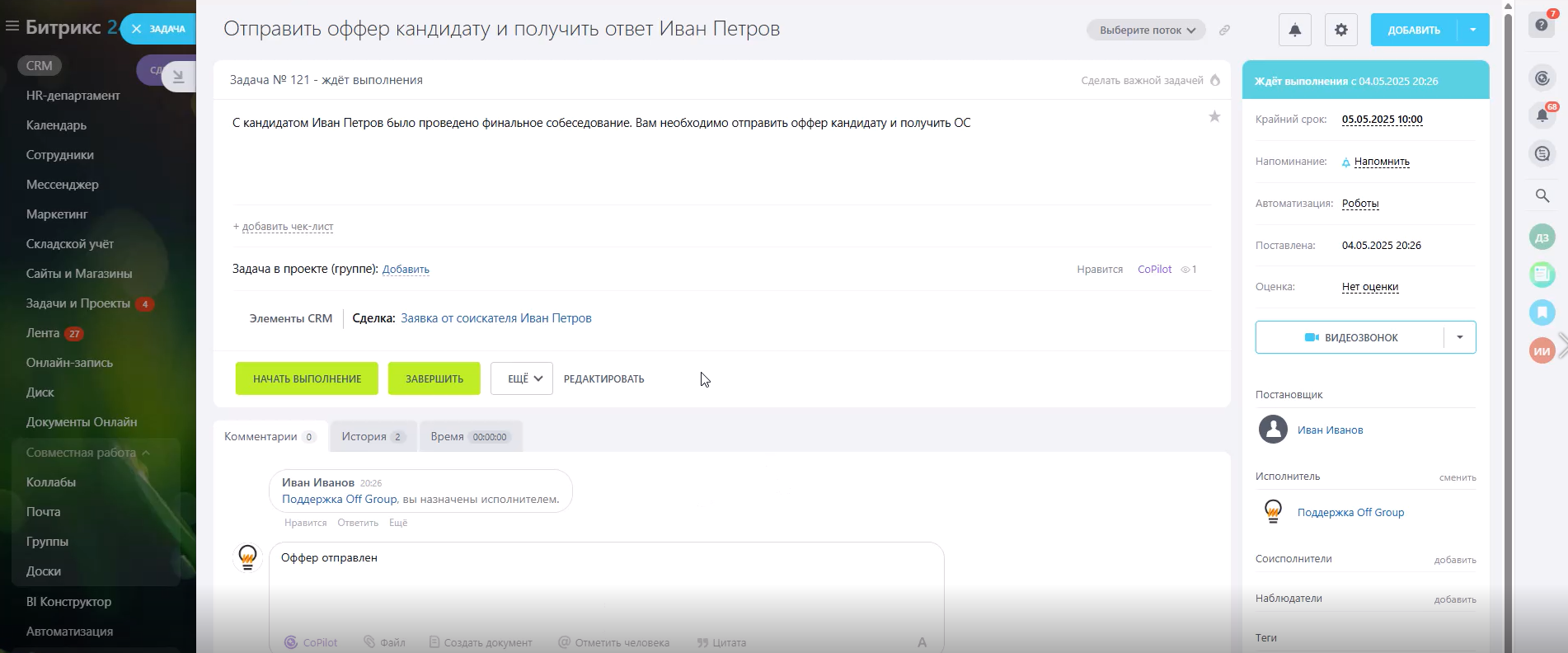 На стадии «Оффер» система создаёт задачу отправить предложение кандидату..png)